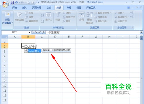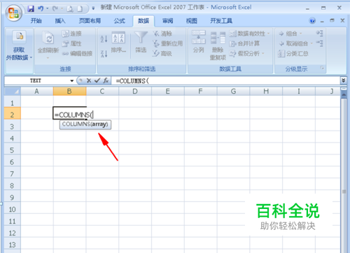 下面以示例来介绍Columns函数的使用方法,在单元格中输入函数“=Columns(A1:B1)”(如图);