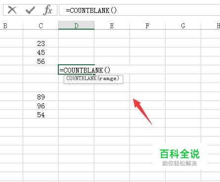 在选择的单元格内我们输入“=COUNTBLANK()”函数,如图所示: