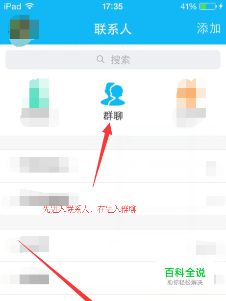 首先进入手机qq,进入群组功能,有的人找不到,因为你在会话里,先转到联系人就能看见了。