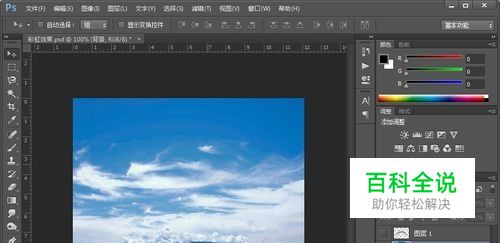 选渐变工具,在选择工具栏中选径向渐变工具;单击渐变列表,打开渐变编辑器对话框,选“透明彩虹渐变”,并把该颜色作为颜色调整的基础渐变方式。