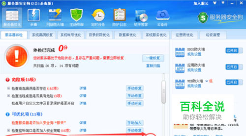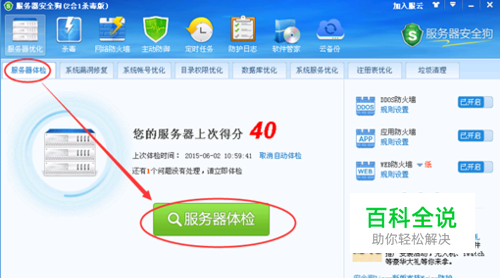打开“服务器安全狗”,点击“服务器体检”,如下图: