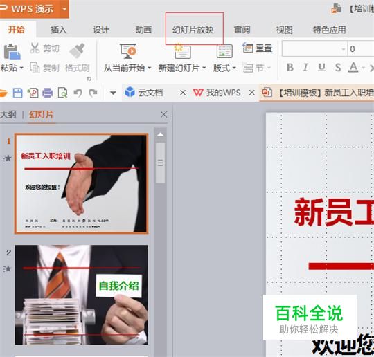 打开需要播放的PPT,找到幻灯片放映,见下图