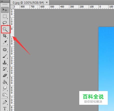 使用ps将我们的图片打开,然后在工具箱内找到魔术棒工具,如图所示: