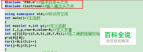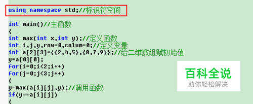 int max(int x,int y); //定义函数 int i,j,y,row=0,colum=0; //定义变量 int a[2][3]={{2,4,5},{8,7,9}}; //给二维数组赋初始值 y=a[0][0];