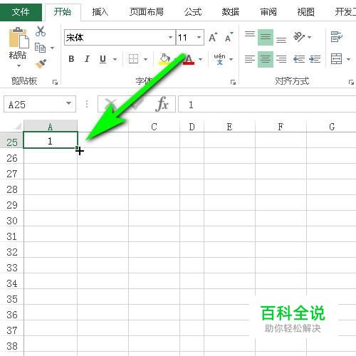 鼠标点住A25单元格右下角的填充柄;点住向下拉。拉到截止单元格为止。