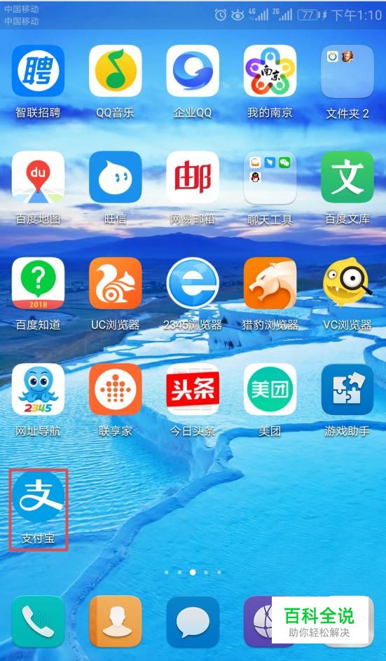 首先,我们打开我们的手机,然后我们点击支付宝;