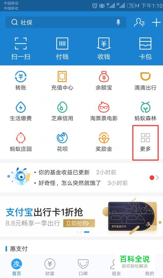 进入支付宝之后,我们点击更多;