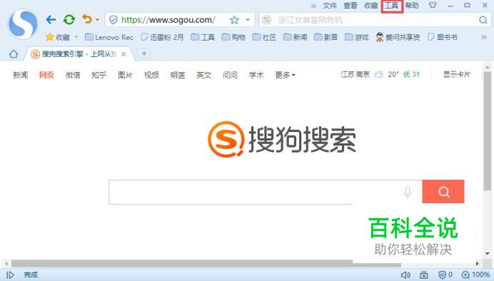 首先,我们打开我们电脑上面的搜狗浏览器,然后我们点击工具;