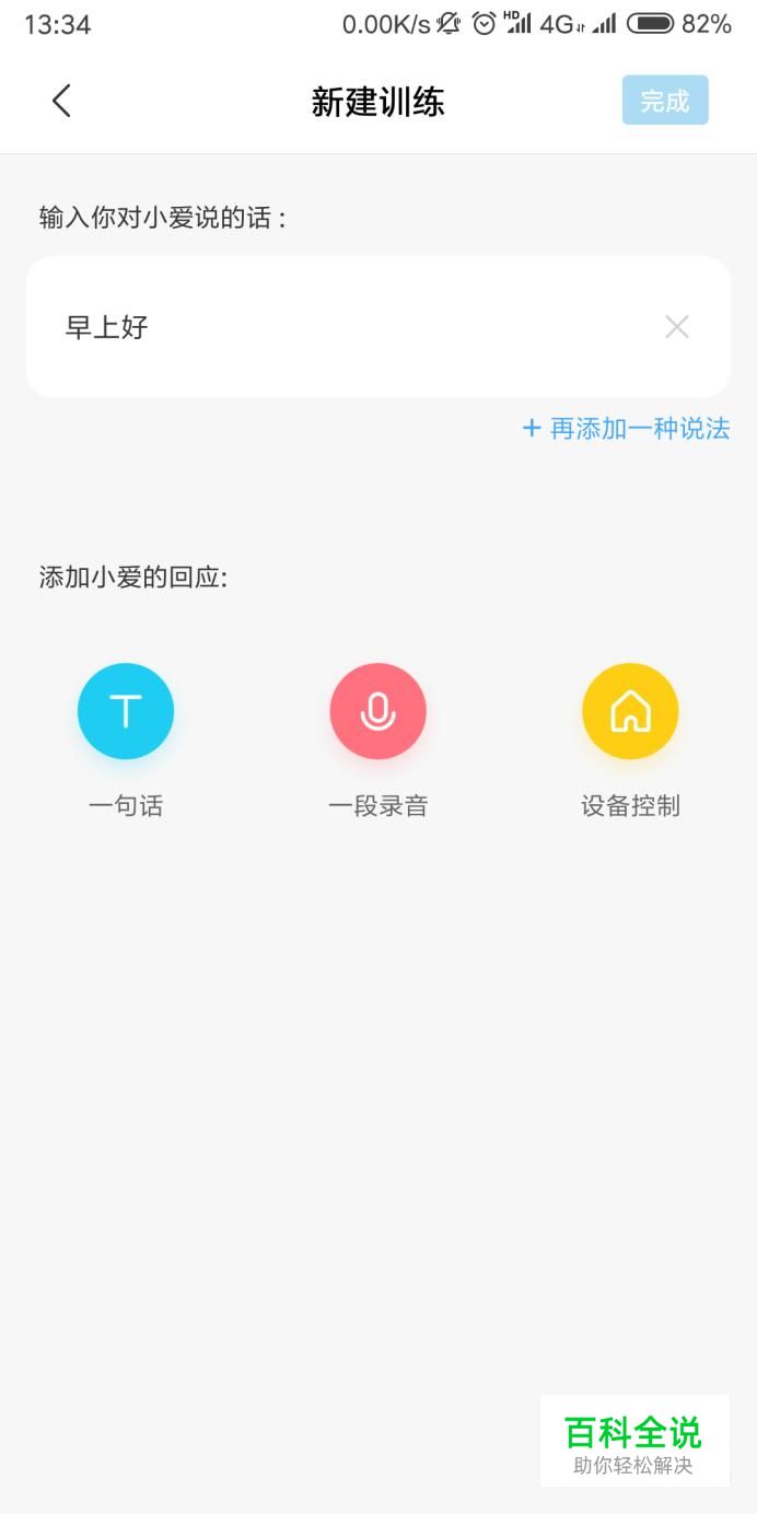点击新建训练,进入去以后可以在输入框中输入自己想要对小爱同学所说的话,也就是训练的语言;