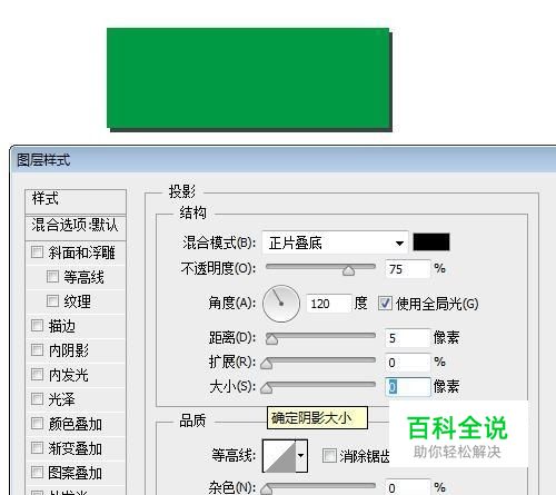 再设置一下投影颜色,不透明度和投影距离,实边投影效果就出来了。