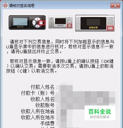 录入收款人信息完成后,用户将U盾插入到电脑上,之后输入U盾的密码,再按U盾上的【OK】案件即可。