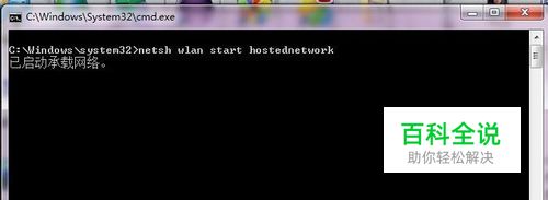 输入所要执行的命令 “netsh wlan start hostednetwork ” 进行保存