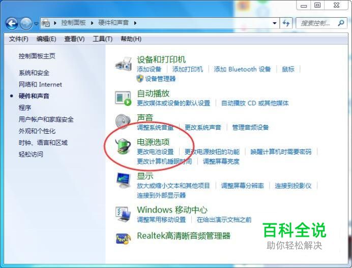 电源选项 然后点击右侧的【电源选项】,如下图所示: