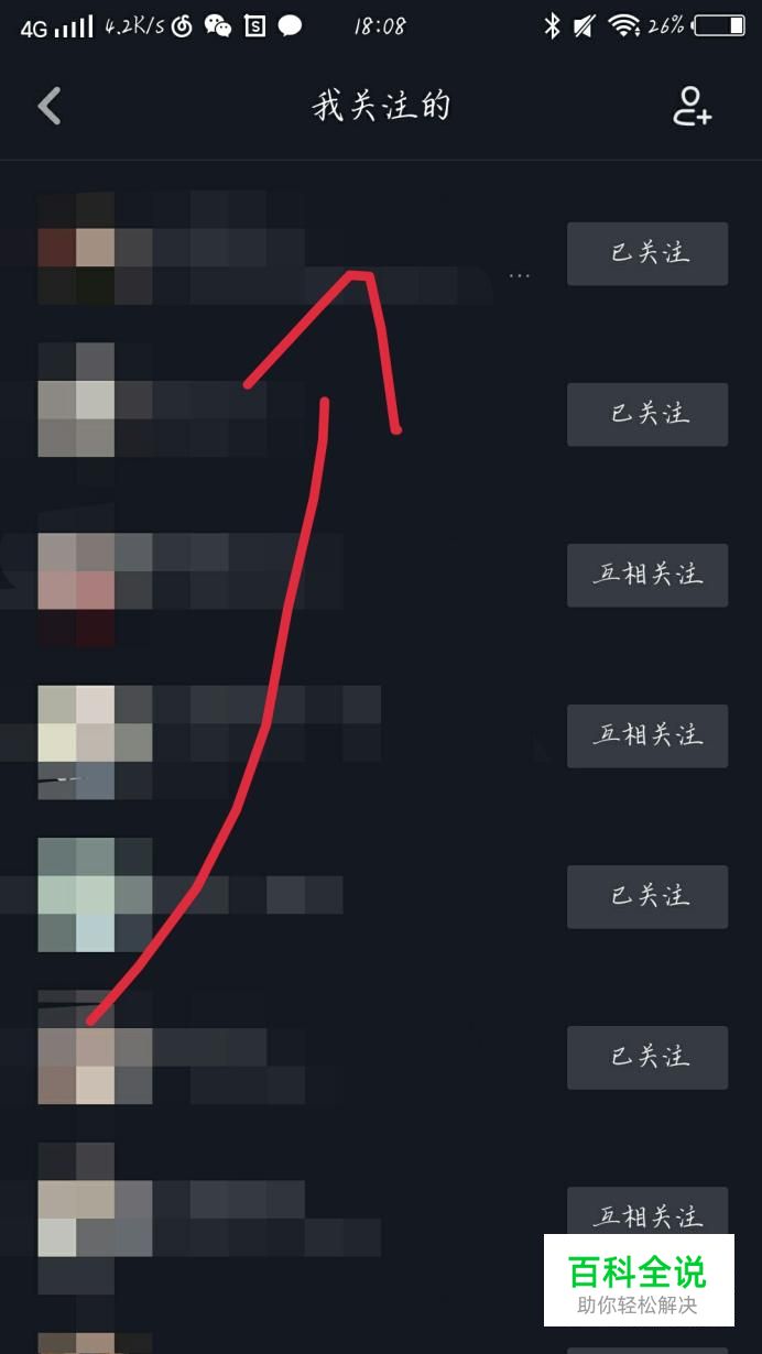 点击“关注”选项,如图1箭头所示。你会看到出现一个新的界面,点击你关注的一个人。