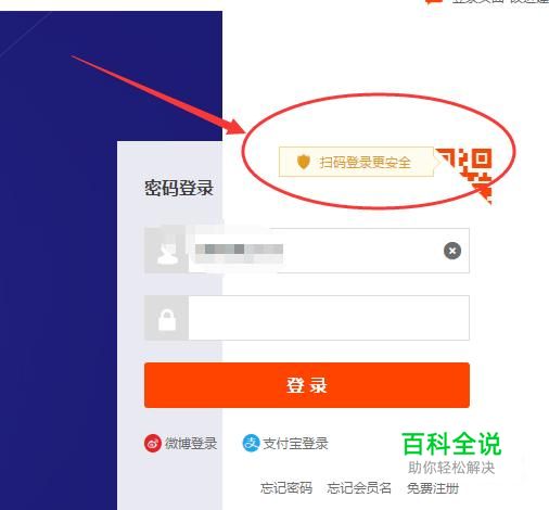 扫码登陆更安全 然后点击【扫码登陆更安全】,如下图所示: