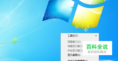 开启电脑,桌面任务栏,鼠标放在空白区域右击,然后单击“属性”。如图。
