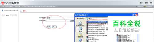 第三步:导入类型中有,软件,模块,模块元素,选择类型为软件,然后选择导入文件,点击导入