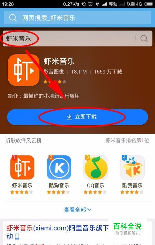 打开浏览器,搜索“虾米音乐”,并点击下载。
