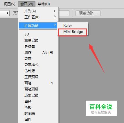 点击扩展功能选项在其子级菜单哪里找到mini bridge选项,如图所示:
