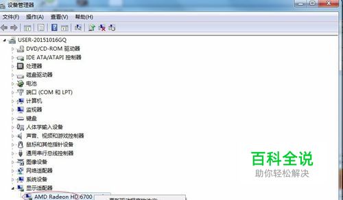 打开设备管理器后,点击“显示适配器”,下面显示本机显卡的驱动情况,一般有1-2项,逐项卸载掉,可以右键点击项,在弹出菜单选择“卸载”,在弹出确认框打勾并“确定”。