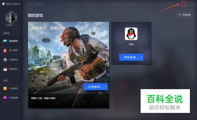 打开腾讯手游助手,点按界面右上角位置的三横线。