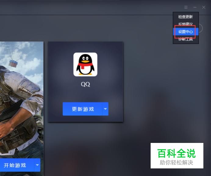 在下拉菜单中选中设置中心。