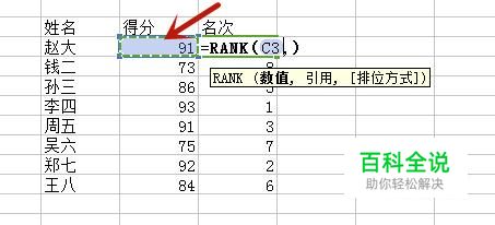 Excel如何用rank函数自动排名