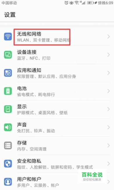 弹出的界面,我们点击无线和网络;