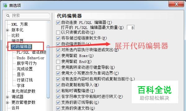 接下来在弹出的首选项界面中我们展开代码编辑器折叠内容,如下图所示