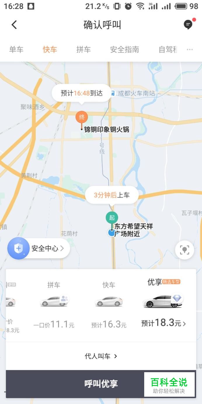 输入目的地后进入确认呼叫界面,在下方点击“代人叫车”