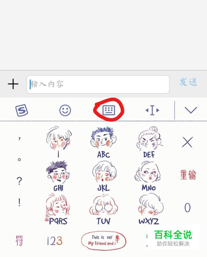 进入输入文字的页面,弹出搜狗输入法,在选项中找到键盘标识,点击键盘标志。