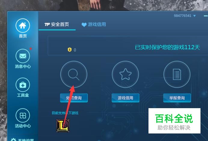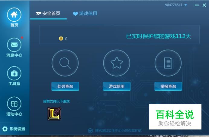 首先你要做的就是登录到腾讯游戏的安全中心如下图。