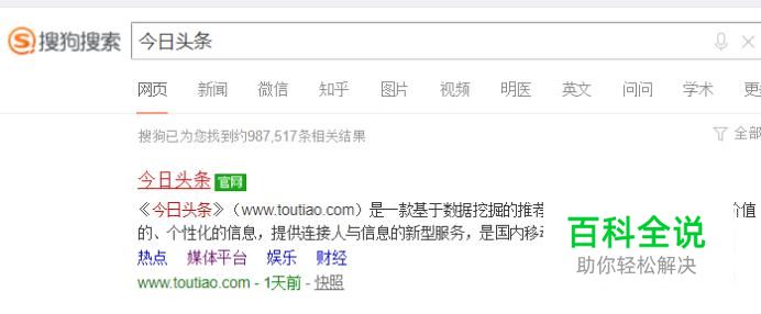 首先,在搜狗浏览器中输入今日头条并点击回车键,如下图所示。