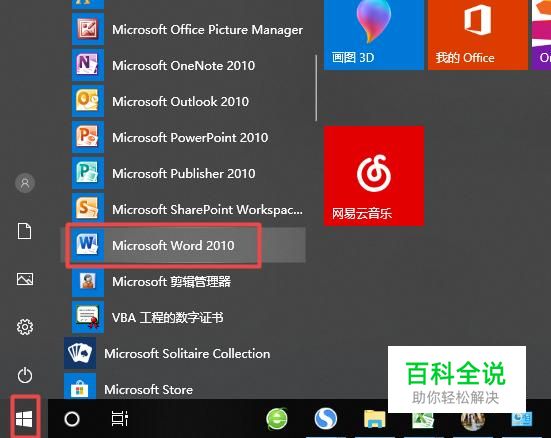 首先,我们点击我们电脑桌面左下角的开始按钮,然后我们点击word;