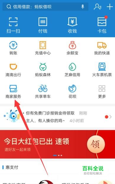 在“商家服务”页面,选择“花呗收钱”,如图所示。