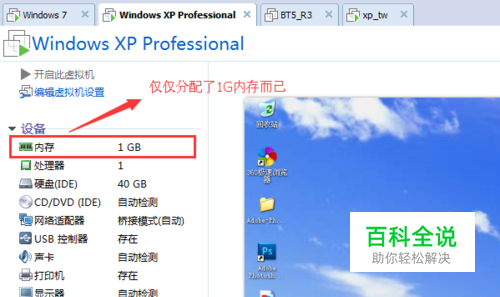 接着,再来看看我这个xp系统的虚拟机设置的是多少内存呢?会是2.45G内存吗?答案当然不是!我这个虚拟机仅仅是分配了1G内存而已!