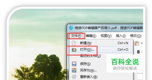 安装pdf文档编辑工具,进入界面后,请点击“文件——打开”。