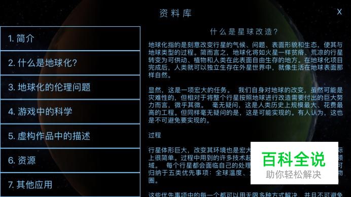 自此你终于进入了游戏主界面了,在这里,你就可以开始你的外太空殖民了,你可以熟读里边理论知识,让你更加快速上手。