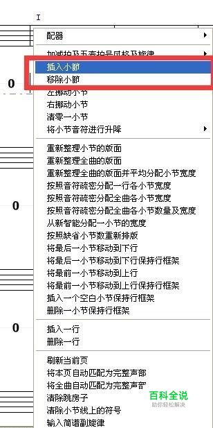 鼠标移到需要删除或者插入小节的小节线上,点击鼠标右键,选择插入小节或者移除小节