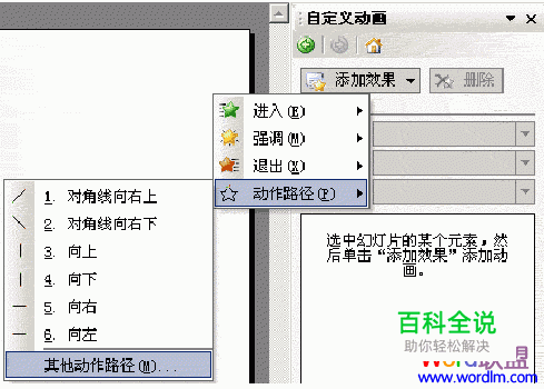 再选择“添加效果”→选择“动作路径”→选择“其他动作路径”如图: