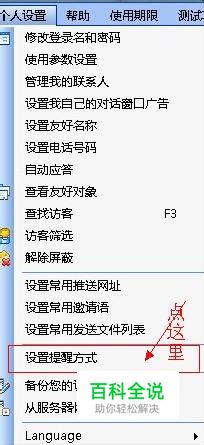 首先我们要登陆商务通,然后看到商务通的主体界面,找到最上方“个人设置”鼠标移动上去