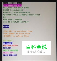 手机进入刷好的recovery界面,(将手机彻底关机,在关机的状态下,按住“电源键+音量下”进入Hboot;在“Hboot”界面下按音量下选择“recovery” 进入recovery界面)