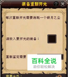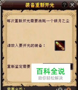 放入已经开光的装备到装备栏,并且确认在包裹中有“银月之尘”道具,点击“确定”后装备重新开光成功。