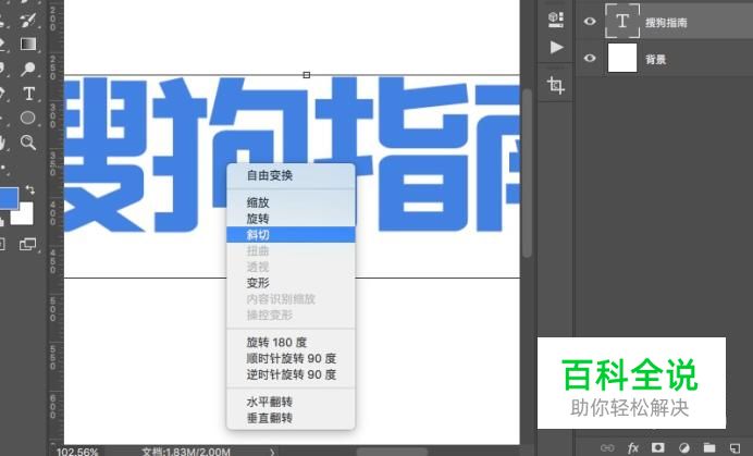 ctrl+T进入自由变换,选择“斜切”,对文字的角度进行适当调整。