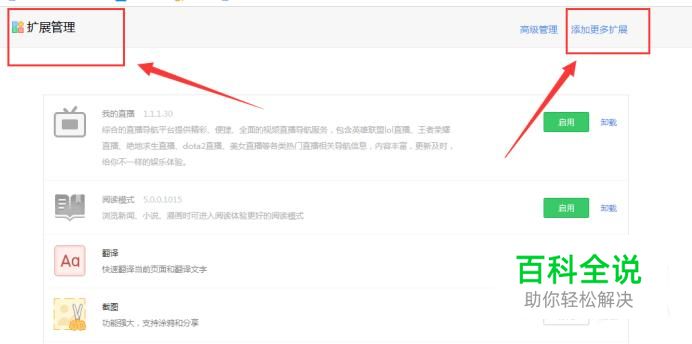 添加更多扩展 会在新网页上显示【扩展管理】页面,在页面的右上角点击【添加更多扩展】,如下图所示: