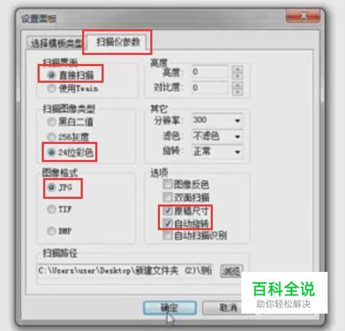然后设置扫描仪参数,具体设置见红框,设置完成后点确定