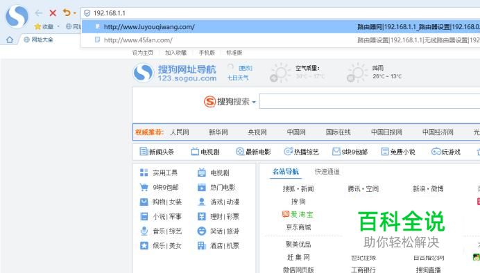 连接好之后,打开电脑浏览器输入网址192.168.1.1进入路由器设置界面。