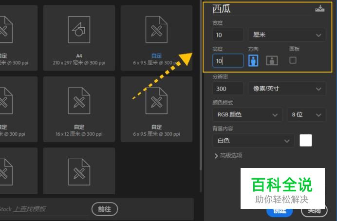 首先,我们打开电脑中的PS CC 2018的软件;首先我们新建一个名字为“西瓜”,大小为10厘米*10厘米的PS文件,如下图所示。