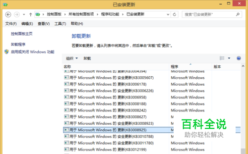 打开控制面板中“windows更新”,打开左下角“安装更新”,找到KB3008925并卸载