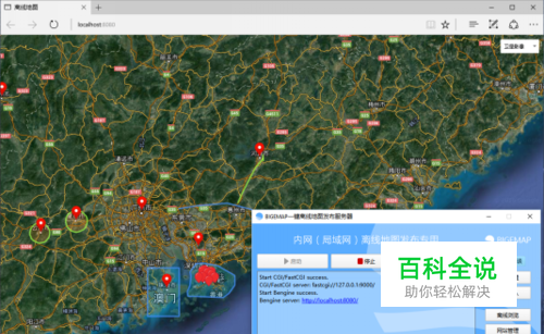 1) 瓦片导入:将下载的瓦片数据部署到离线服务器目录中。点击离线地图发布服务器按钮,弹出选择对话框,选择上一步下载的瓦片目录中的map.ini文件即可。系统将自动识别、导入瓦片数据,可点击按钮查看发布效果。
